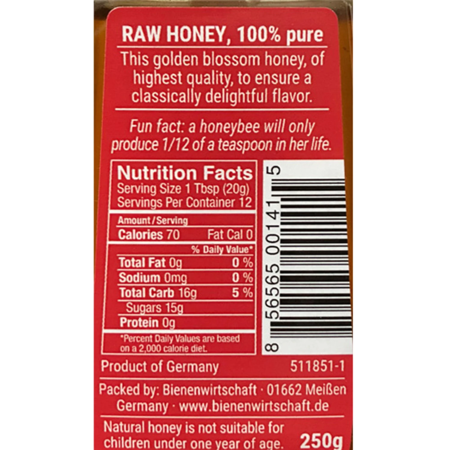 This raw, unprocessed blossom honey was made by the German honey producer Bienenwirtschaft based in the Saxon city of Meissen. Yes that is where the famous porcelain comes from, too. It is one of the companies owned and managed by Breitsamer, Germany’s leading honey processor.