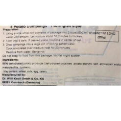Dr. Knoll “Gekochte”Potato Dumplings, Pre-blanched, (8 Pc.), 8.5 Oz.