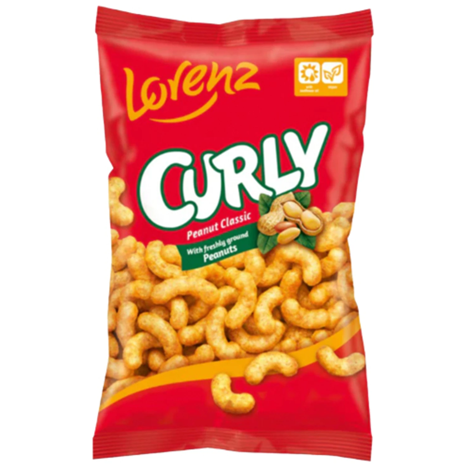 Curly is a crunchy corn snack covered with a rich paste of freshly ground peanuts. A favorite for Bundesliga and salty snack fans,. In the 5.3 oz bag.