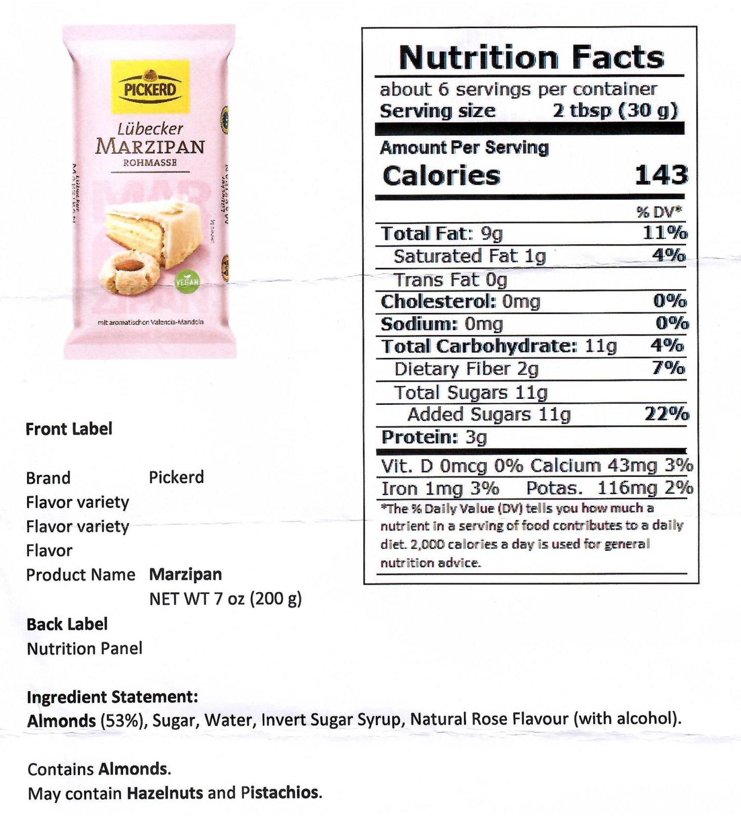 Pickerd’s confectioners marzipan, made from the finest Valencia Alnonds under the strict quality standards of Lübeck, Germany (a protected European specialty) is ideal for fillings, baking or snacking. Add a final touch of aromatic marzipan to your cakes, tarts and pastries. For perfect patisserie and professional confectionery creations.