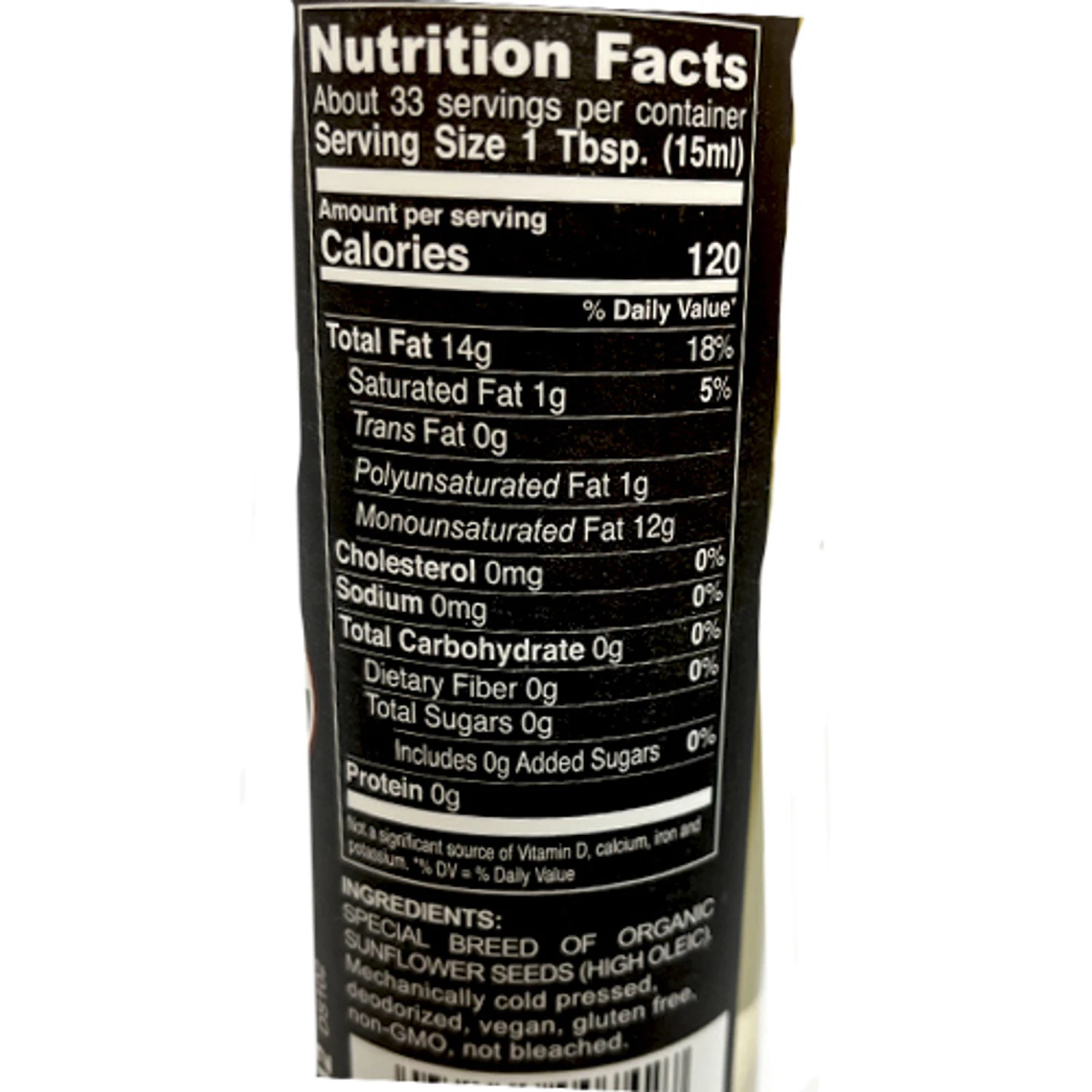 This organic sunflower frying oil with a naturally translucent color has been formulated just right to reach a high smoking point. This is a clean, GMO-free, unflavored and odorless cooking oil perfect for deep-frying, baking and roasting at high temperatures.