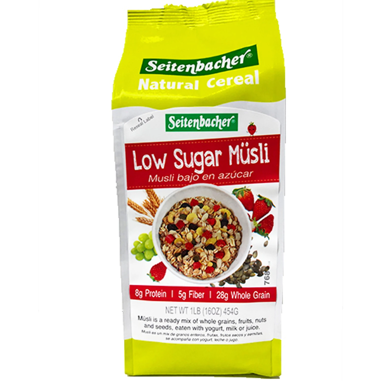 A perfectly healthy breakfast or snack for people trying to cut down on sugar: Seitenbacher’s Low Sugar High Protein German muesli with strawberries, with lots of protein and fiber.