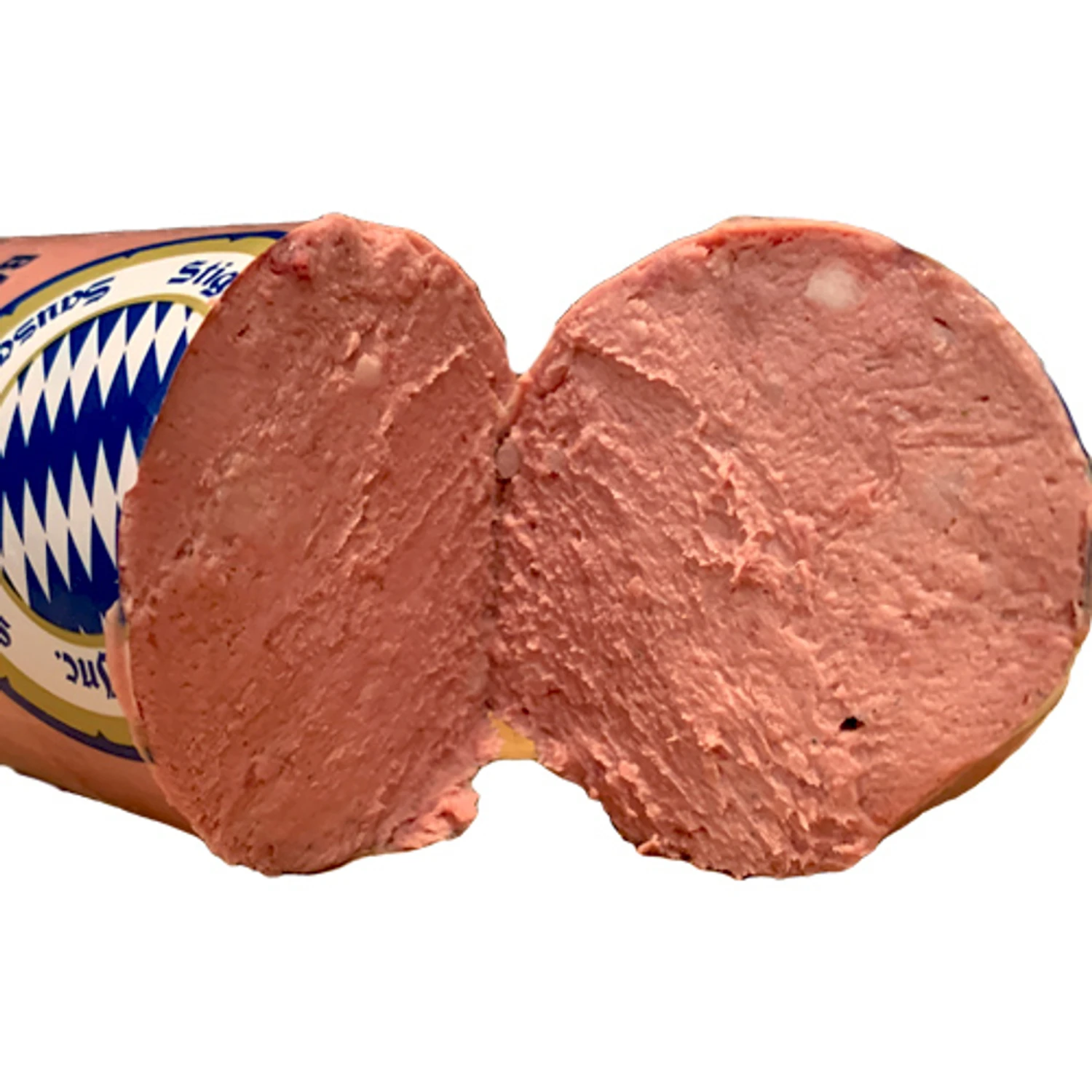 This is finely ground Bavarian Leberwurst (literally: liver sausage or liver pate). Traditionally, this sausage was made from pork or veal liver, but today it’s premium pork and veal meat, with added spices and herbs. Smear on whole grain breads, pretzels or crusty rye bread and top with mustard, salad or radishes.