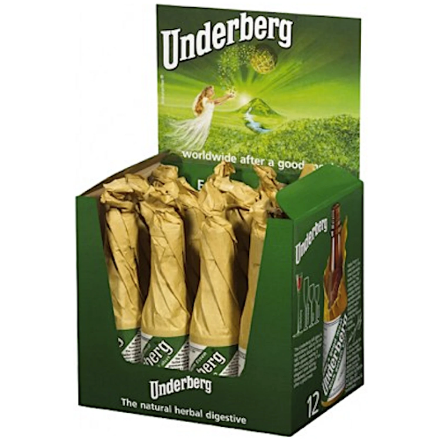 Underberg is a digestif bitter produced at Rheinberg in Germany by Underberg AG, made from aromatic herbs from 43 countries, which undergo inspections and are based on a secret Underberg family recipe whose members are personally responsible for the production of the drink.